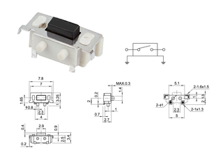 超薄型2×3,3×2.6,2.8×2.4,2.8×1.9,4.5×4.5,4.8×4.8,7.5×7.3等超薄轻触开关;