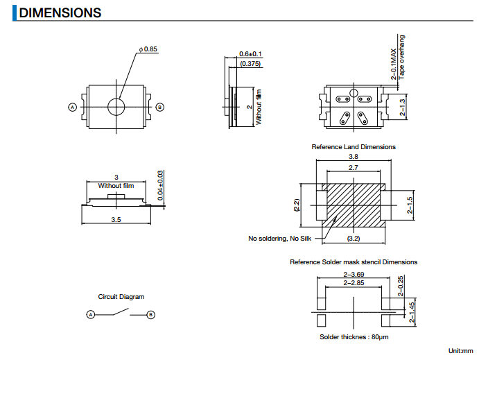 长行程双动作轻触开关8.1×7.7×6.0mm