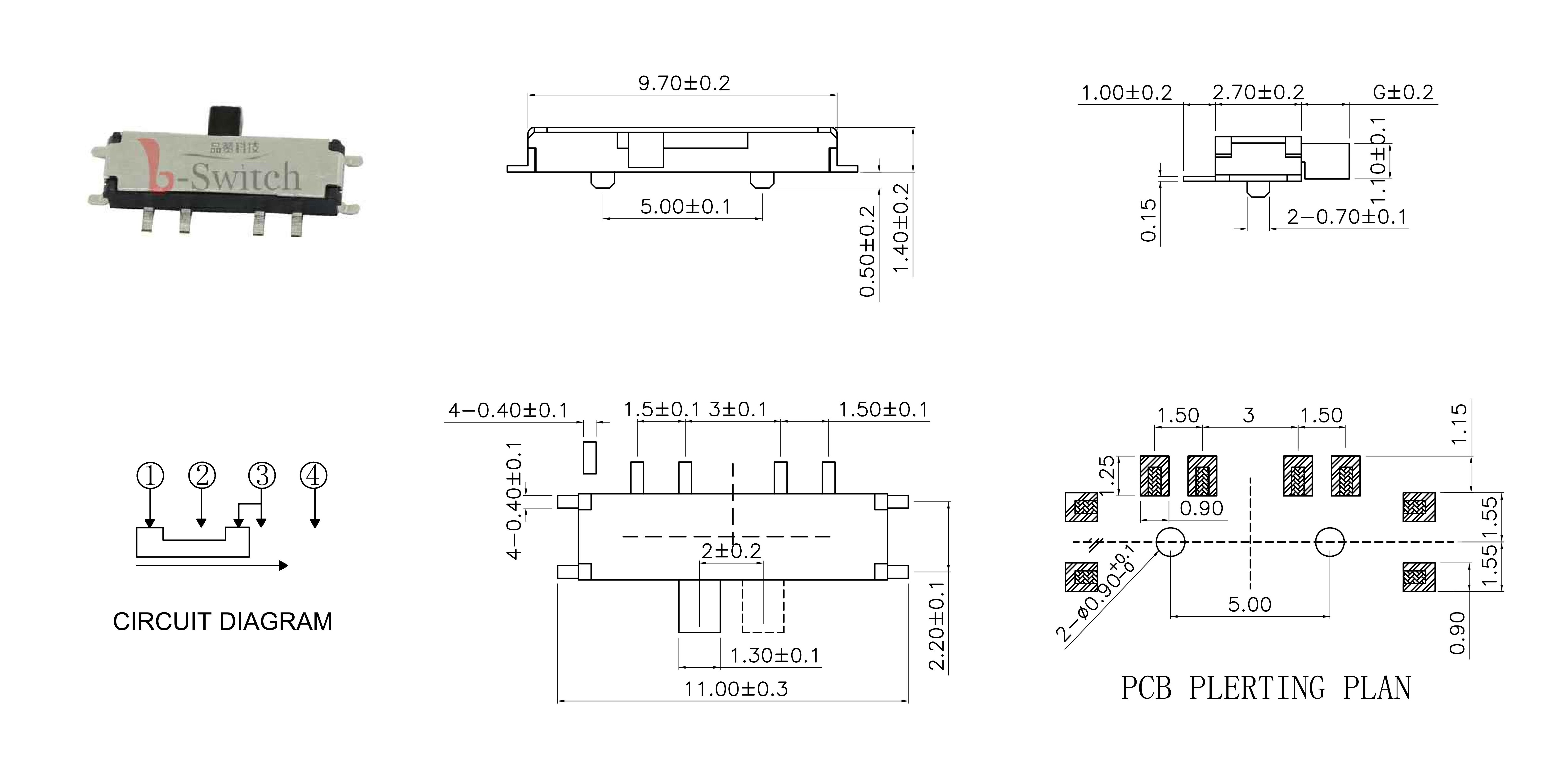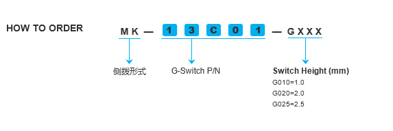 | 1 | MK-13C01-GXXX | 三档 9.7×2.7×2.7mm |