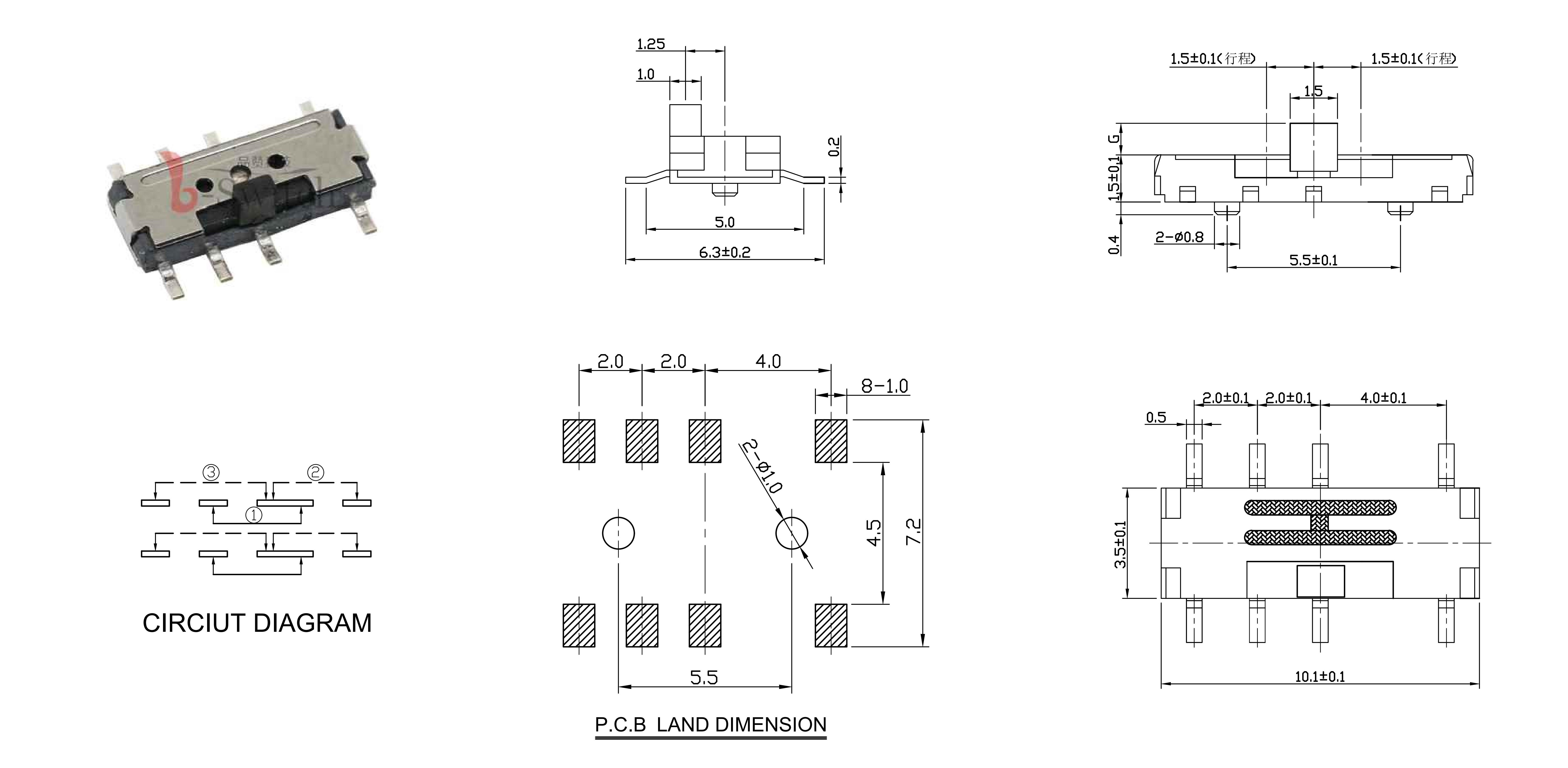 | 1 | MS-23C01-GXXX | 三挡 10.0×3.5×1.5mm |