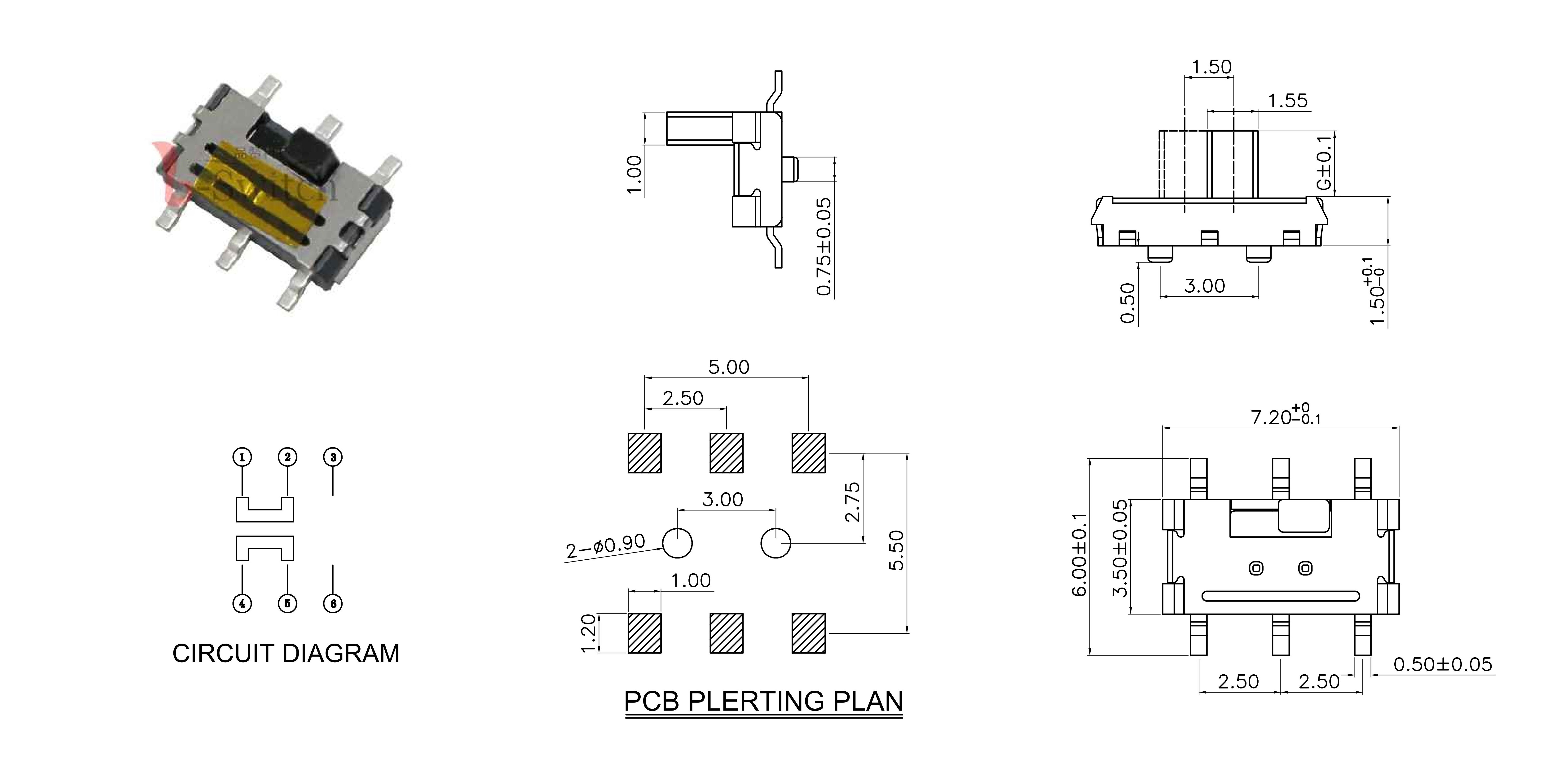 | 1 | MS-22C01-GXXX | 两档 7.2×3.5×1.2mm |