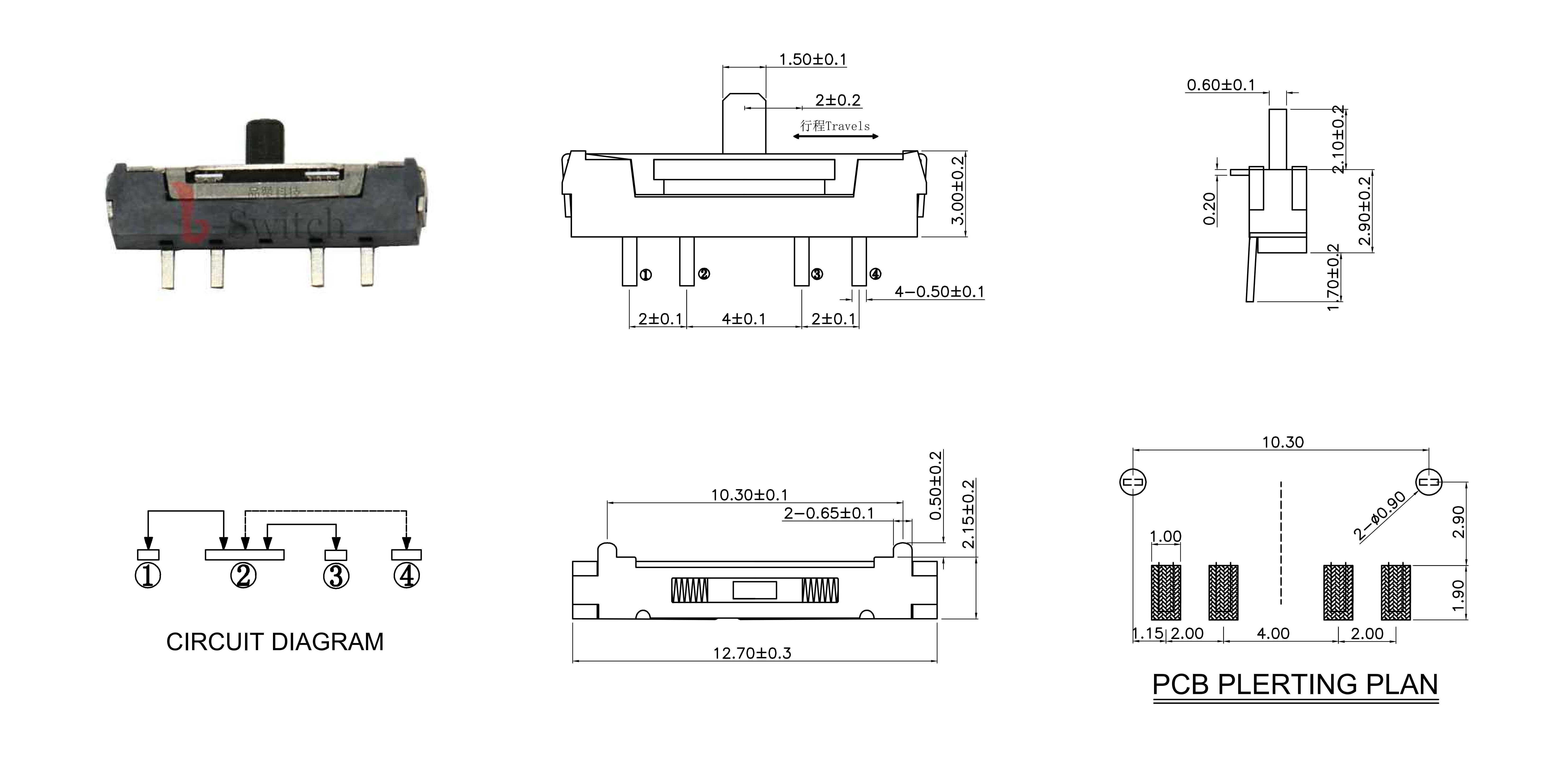 THE SWITCH SHALL BE STORED AT A TEMPERATURE OF 70±2℃ FOR 48 HOURS. THEN THE SWITCH SHALL BE MAINTAINED AT STANDARD ATMOSPHERIC CONDITIONS FOR 1 HOUR AFTER WHICH MEASUREMENT SHALL BE MADE. 放置在温度70±2℃中测试48小时后,再将放置在常温常濕的 环境中1小时后进行测试. |