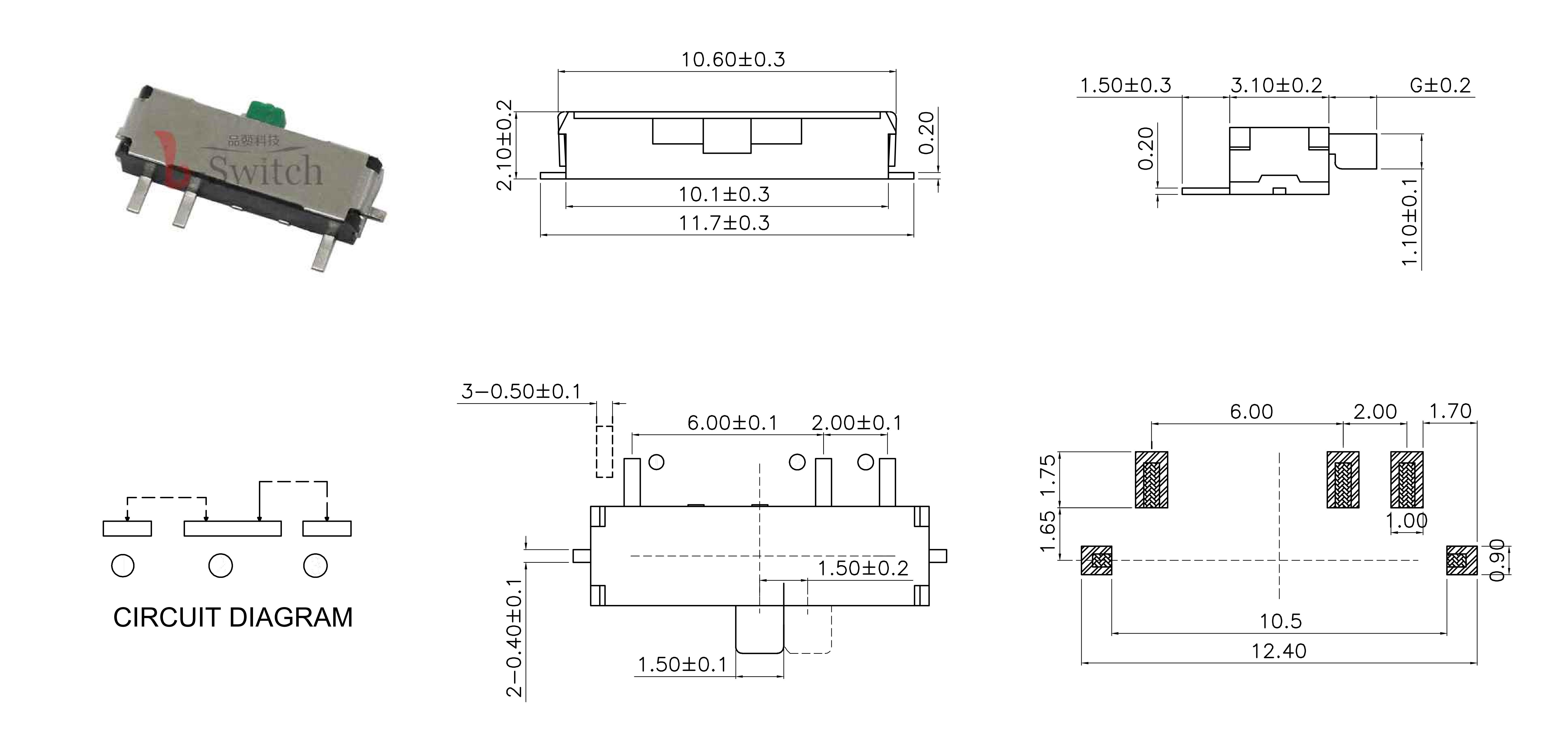CONTACT ARRANGEMENT: 1P2T SLIDE SWITCH