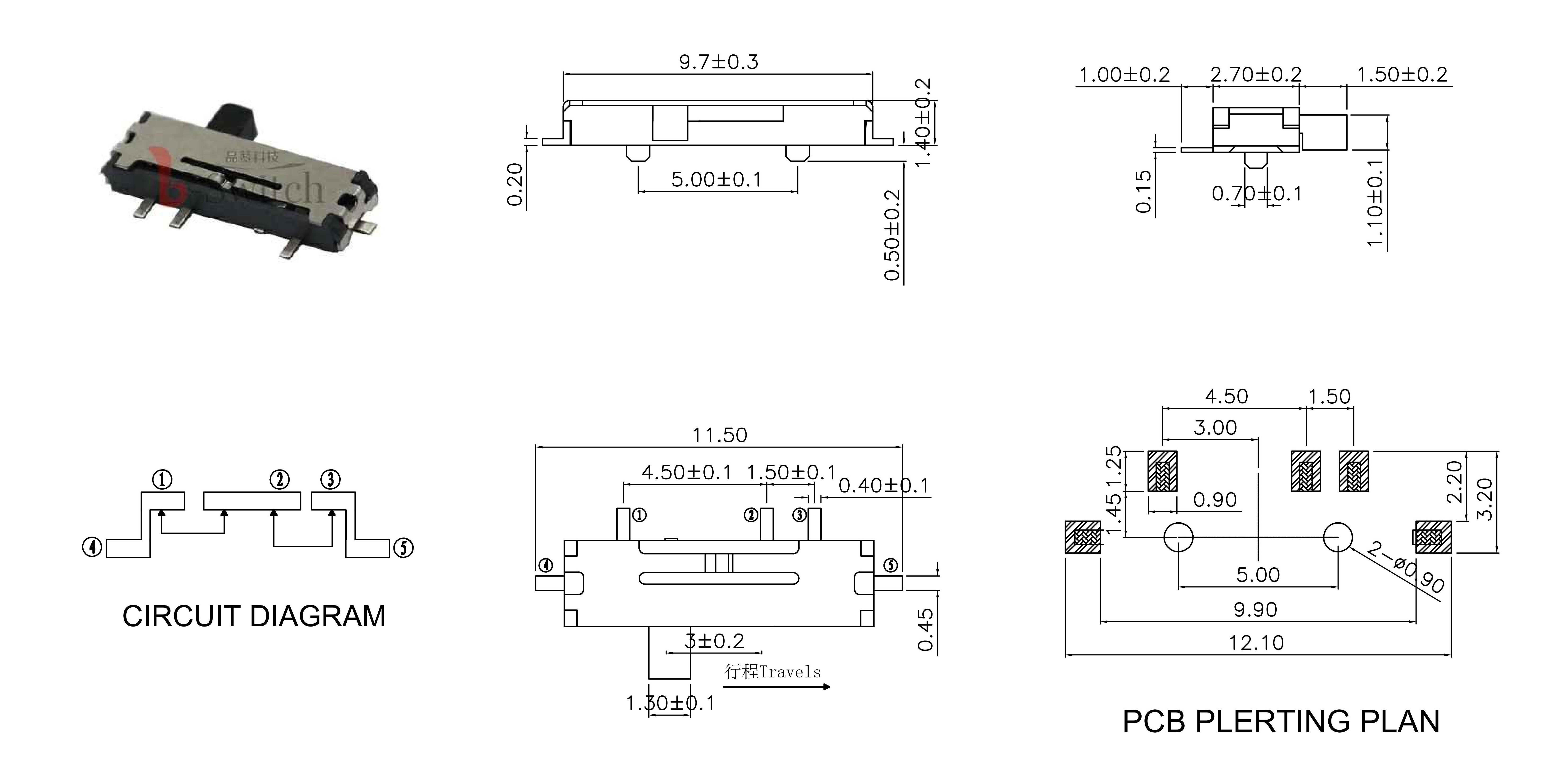 CONTACT ARRANGEMENT: 1P2T SLIDE SWITCH