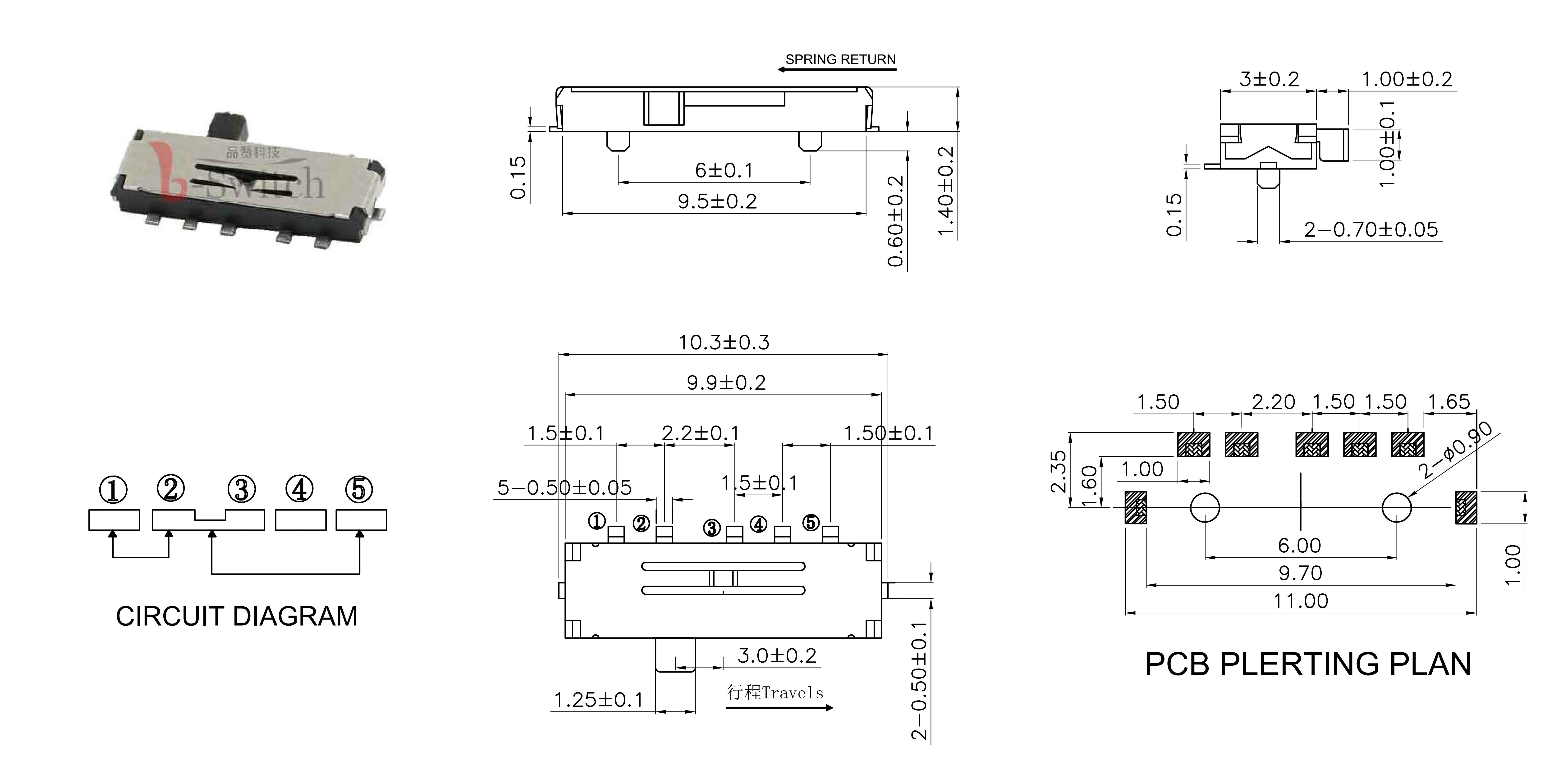 CONTACT ARRANGEMENT: 1P2T SLIDE SWITCH