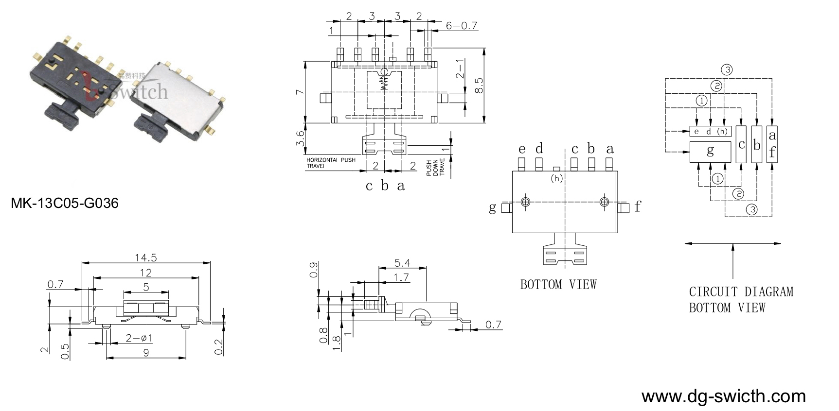 CONTACT ARRANGEMENT: 1P2T SLIDE SWITCH