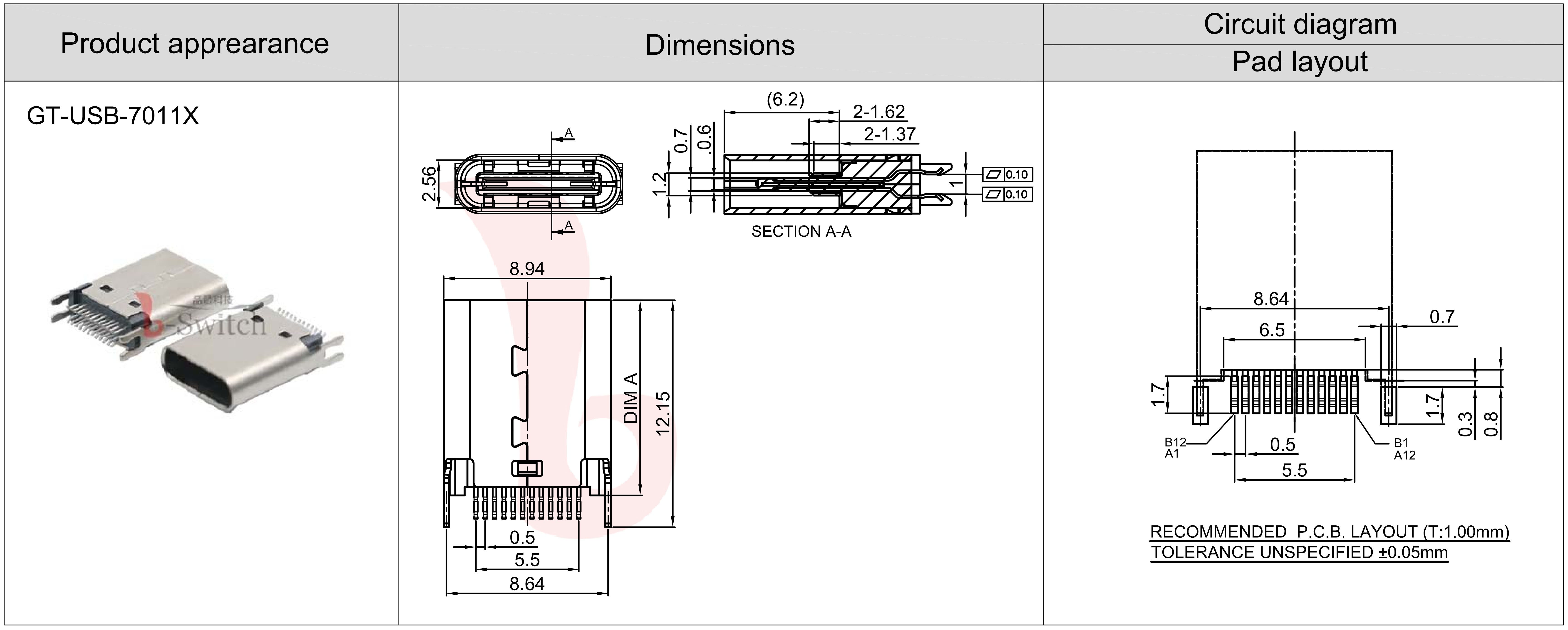 TYPE-C 24PIN 夹板母座长度有10.5与9.3mm,夹板有1.0与0.8mm。