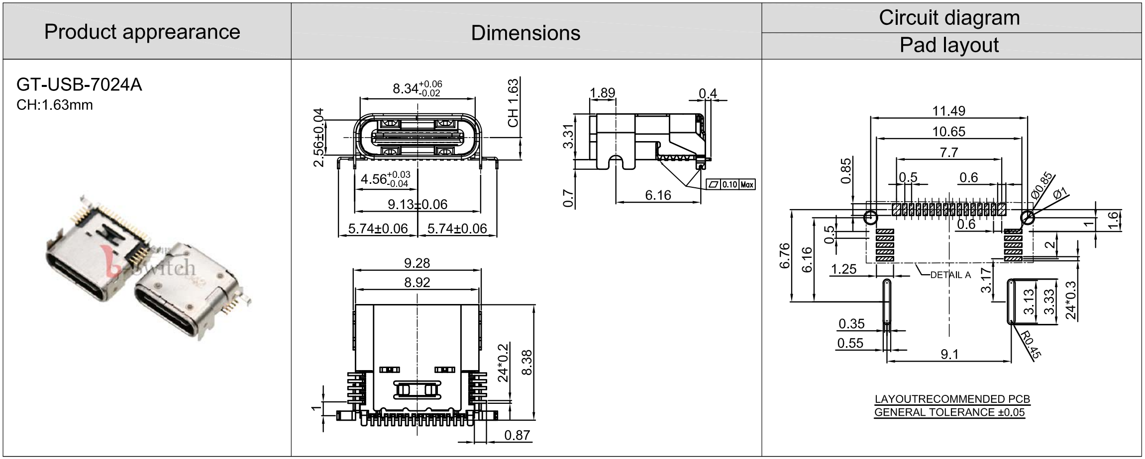 USB TYPE-C 24PIN母座 5A;前脚有:DIP0.7mm、双螺丝锁。