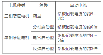 电机在启动时,流过的启动电流是通常电流的3~8倍,因此可能会发生触点的粘连。因电机种类而异,但是流过的电流是公称电流的数倍,因此选择开关时请参考下表所示的值。另外,使电机逆向旋转时,需要考虑到使用ON-OFF-ON开关时应避免产生相乘电流(启动电流+逆起电流)。