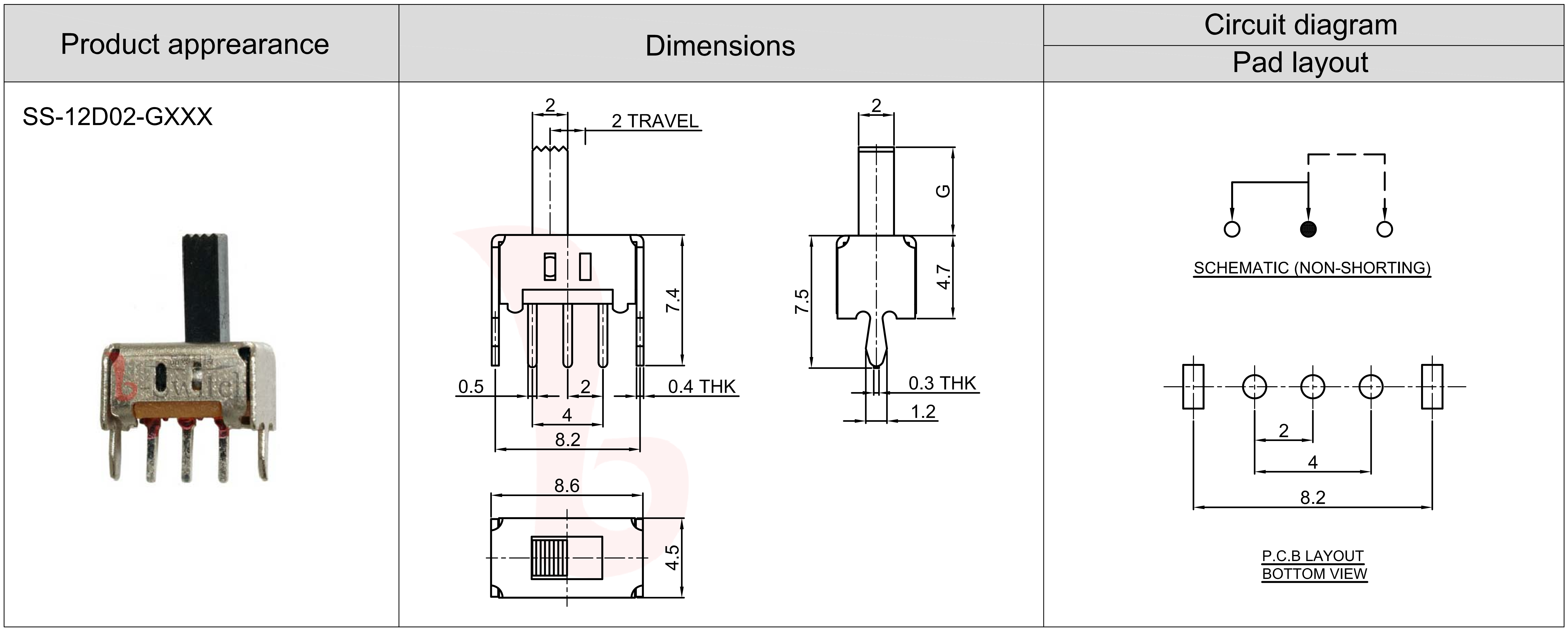 直滑1P2T拨动开关SS-12D02,柄长可定制1.0-10.0mm,手感好,寿命长等特点。