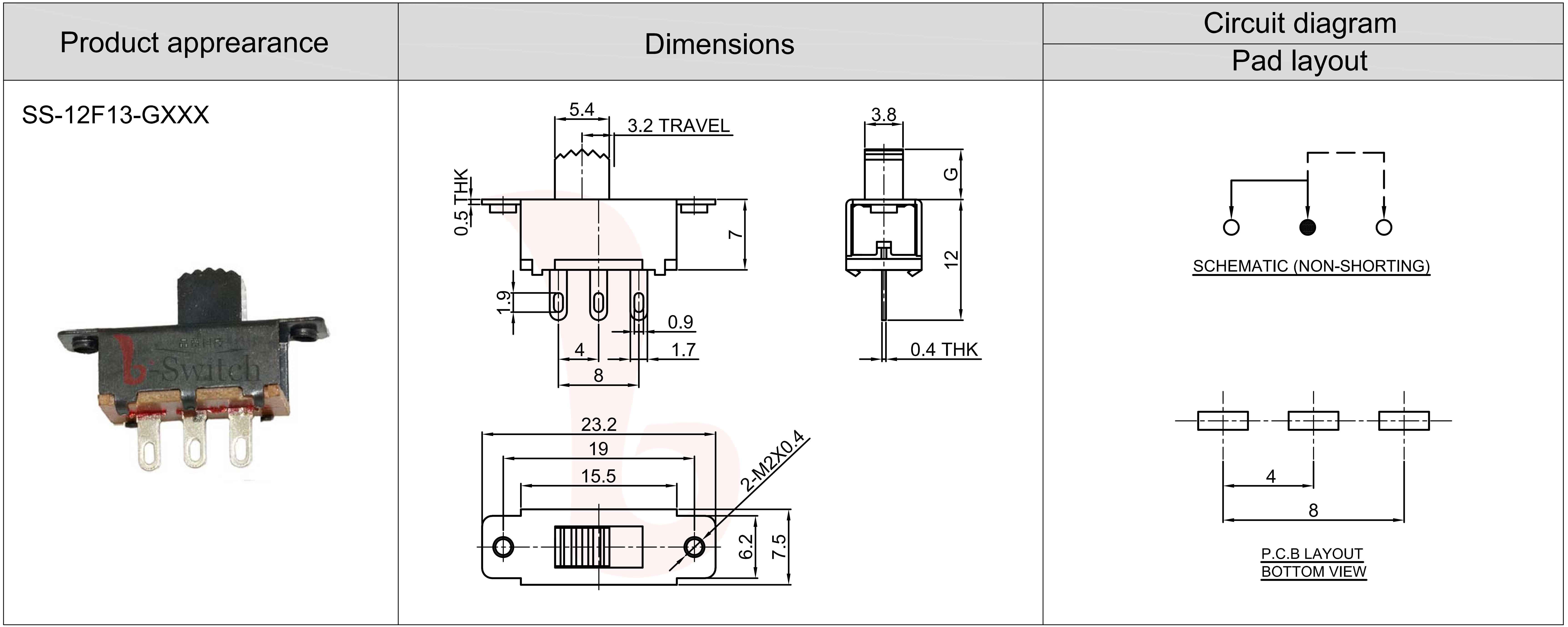 SWITCH TRAVEL:3.2±0.05mm