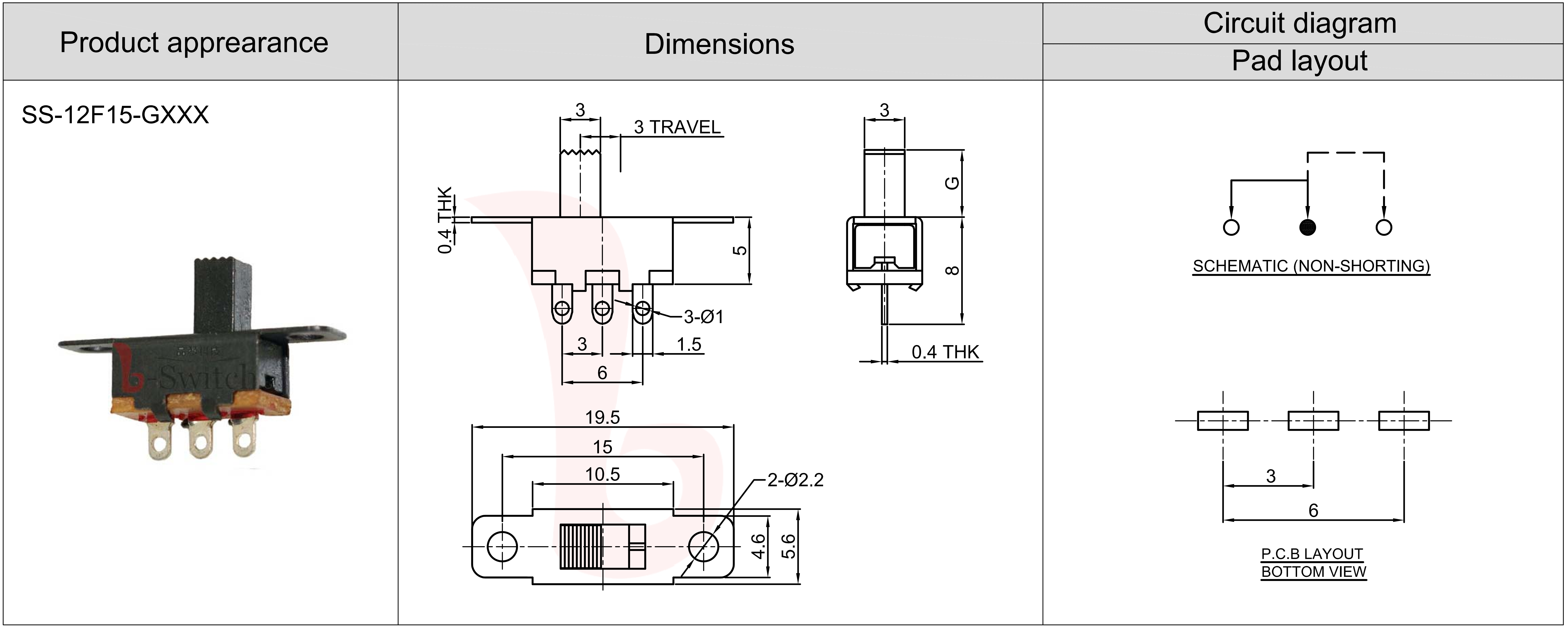 SWITCH TRAVEL:3.0±0.05mm