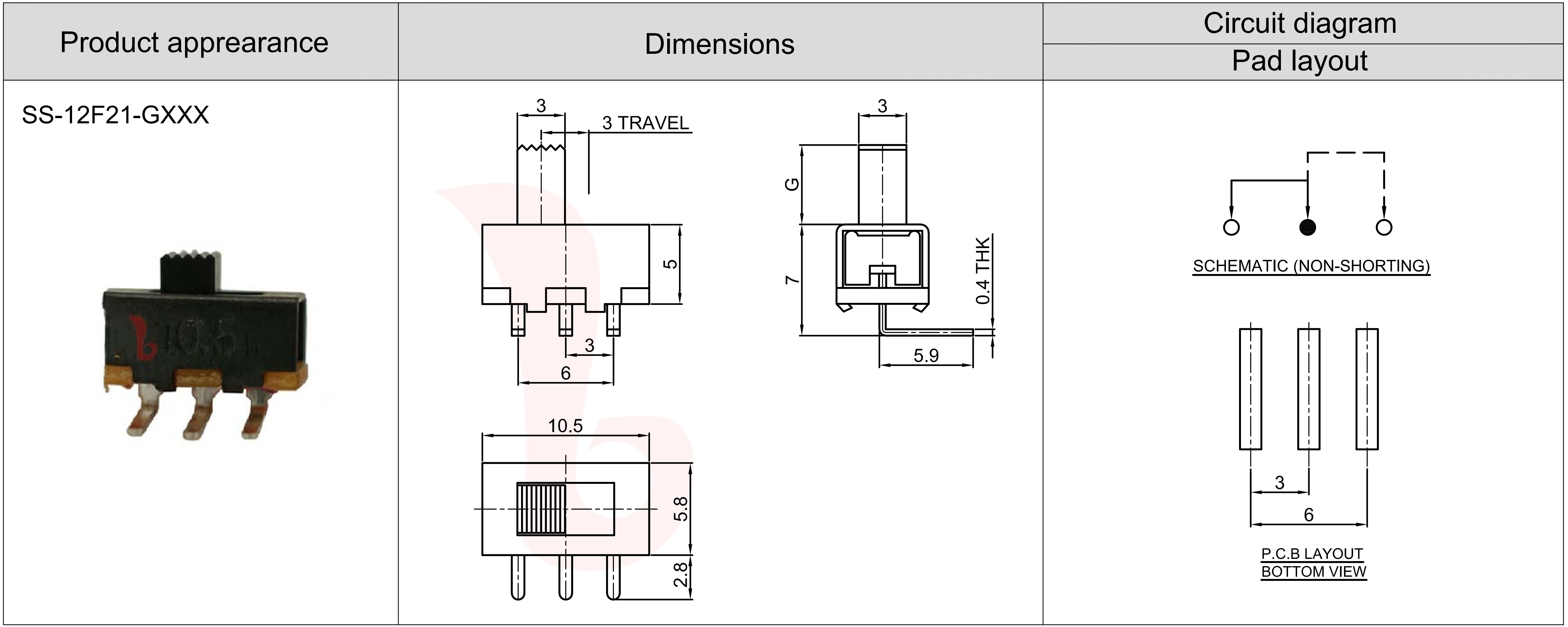 CONTACT ARRANGEMENT: 1P2T SLIDE SWITCH