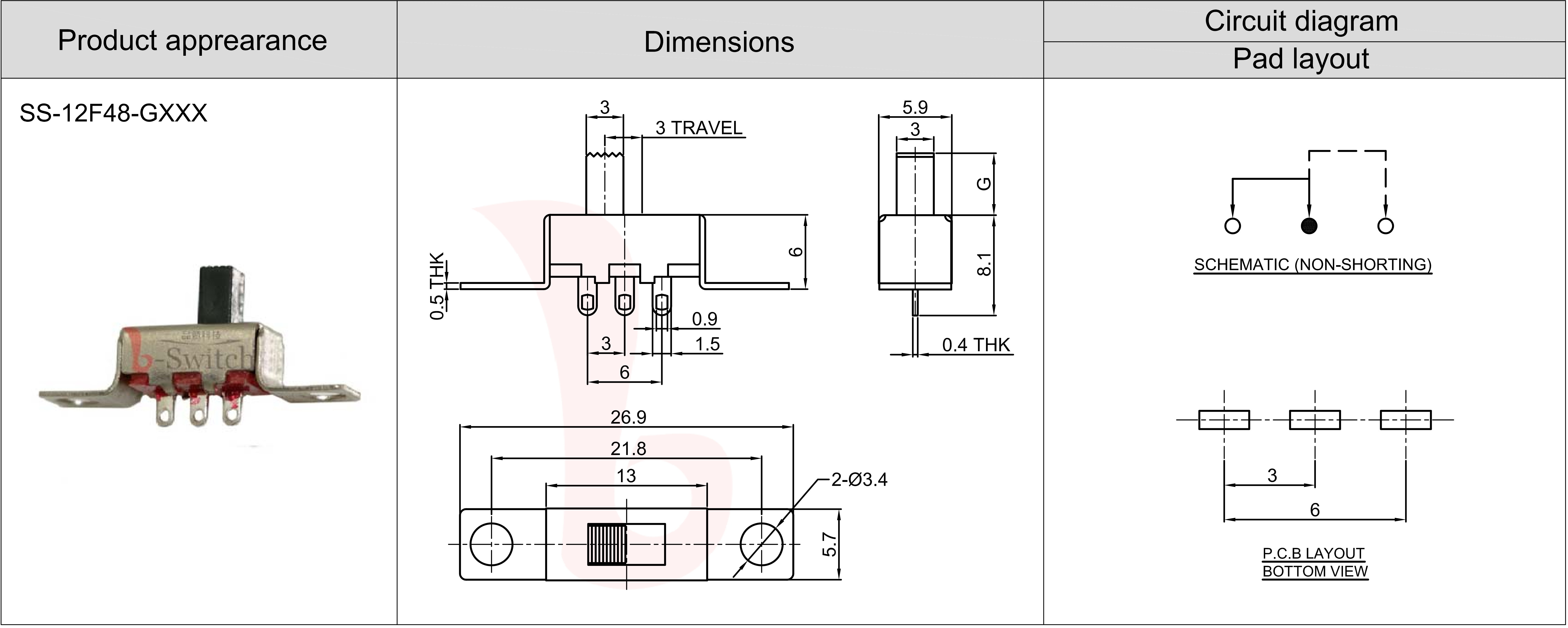 SWITCH TRAVEL:3.0±0.05mm