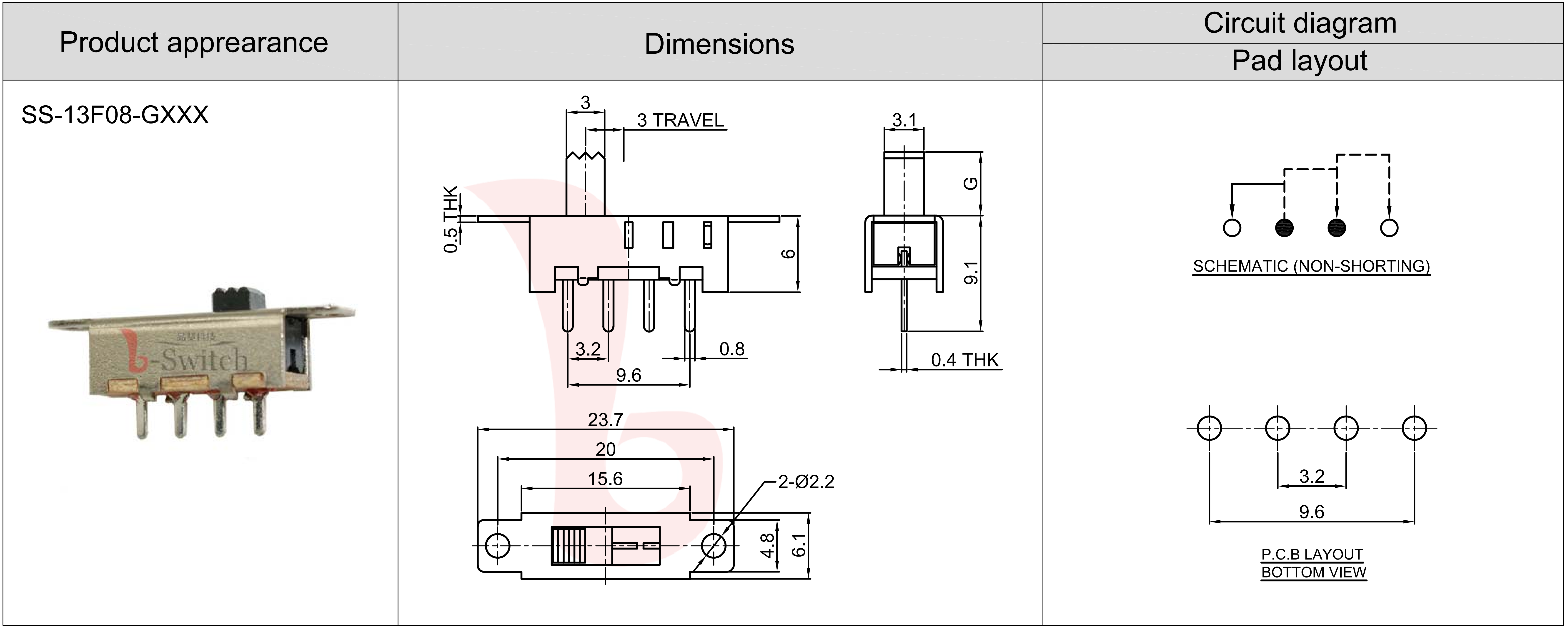 SWITCH TRAVEL:3.0±0.05mm