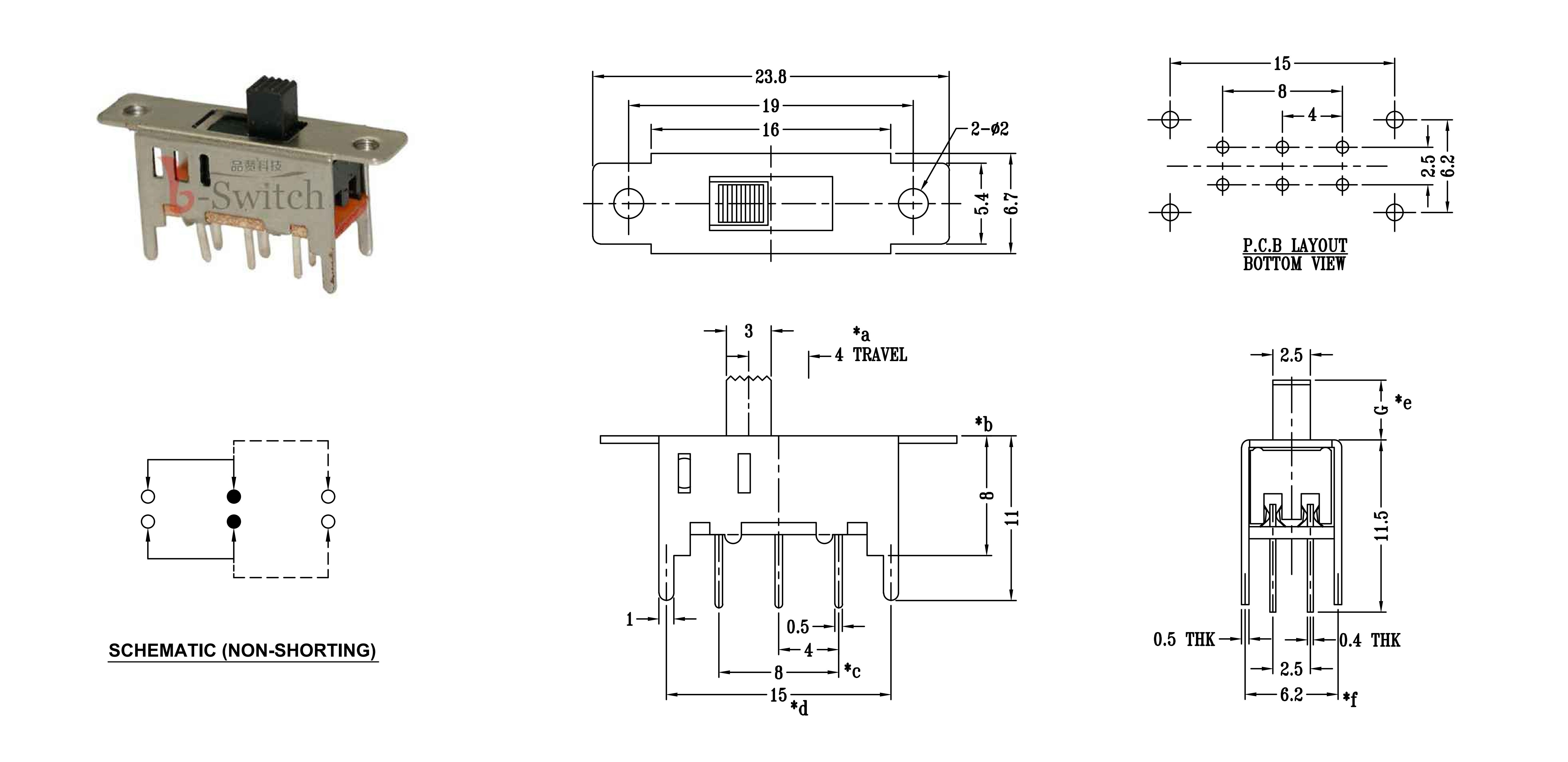CONTACT ARRANGEMENT: 1P2T SLIDE SWITCH