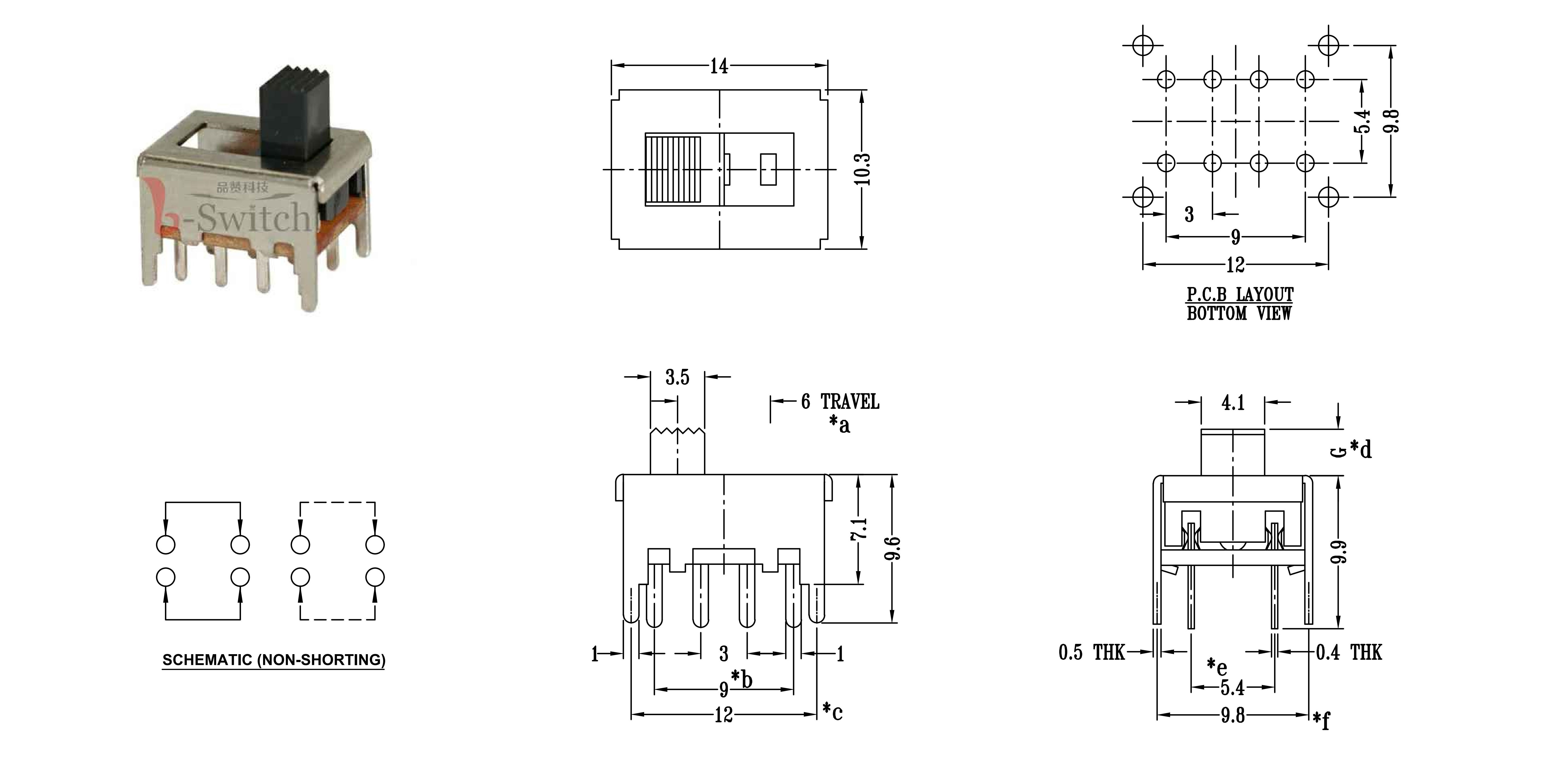 CONTACT ARRANGEMENT: 1P2T SLIDE SWITCH
