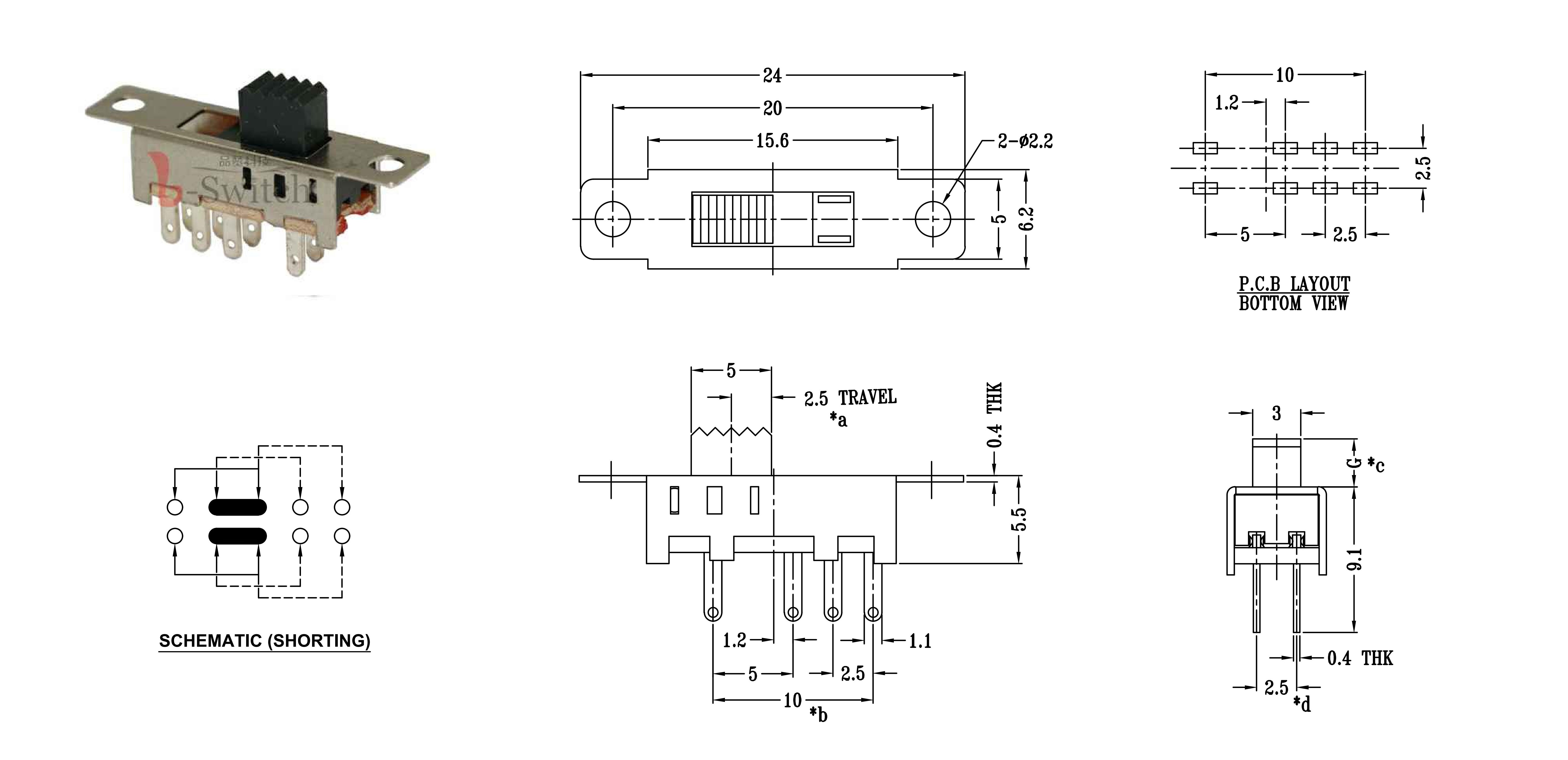 CONTACT ARRANGEMENT: 1P2T SLIDE SWITCH