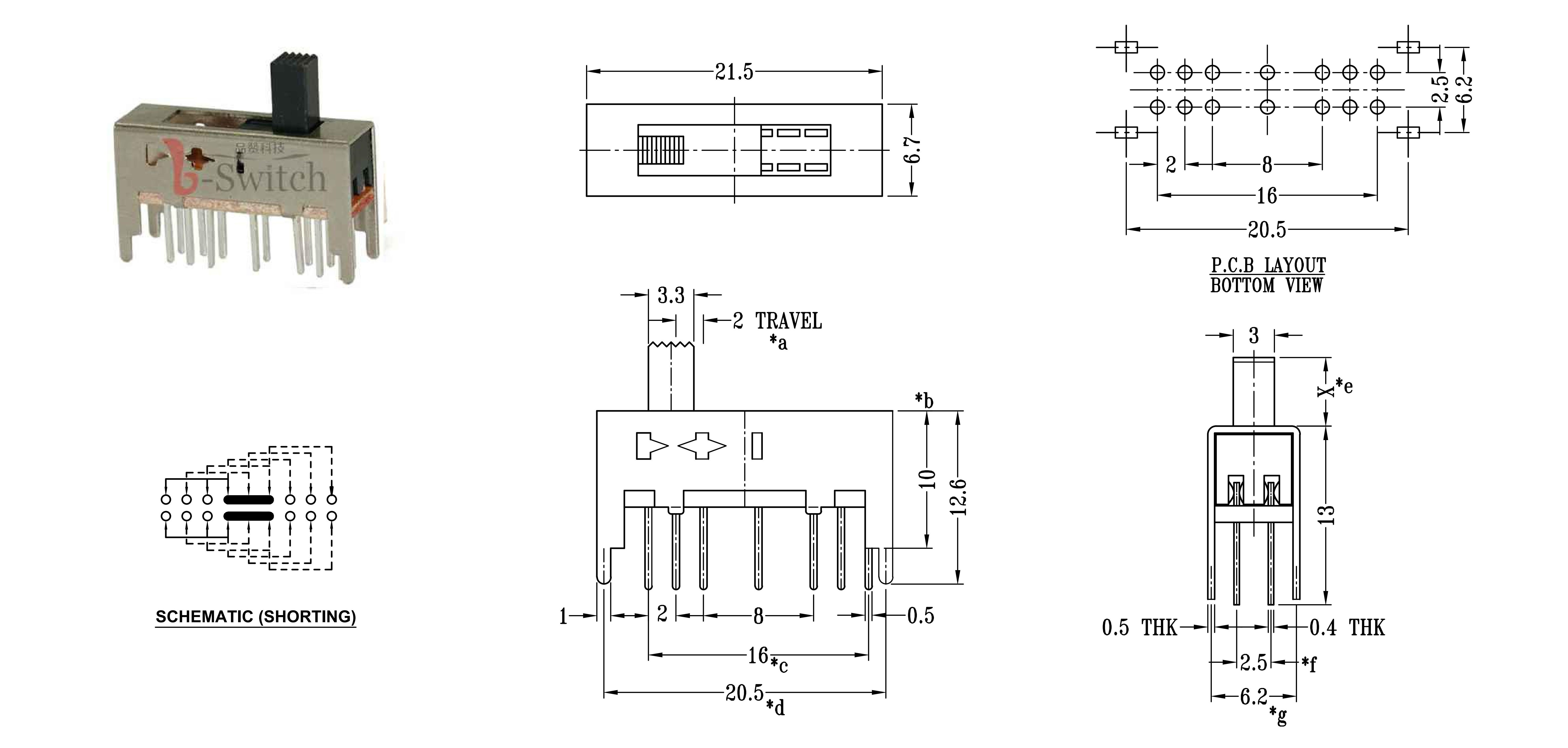 CONTACT ARRANGEMENT: 1P2T SLIDE SWITCH