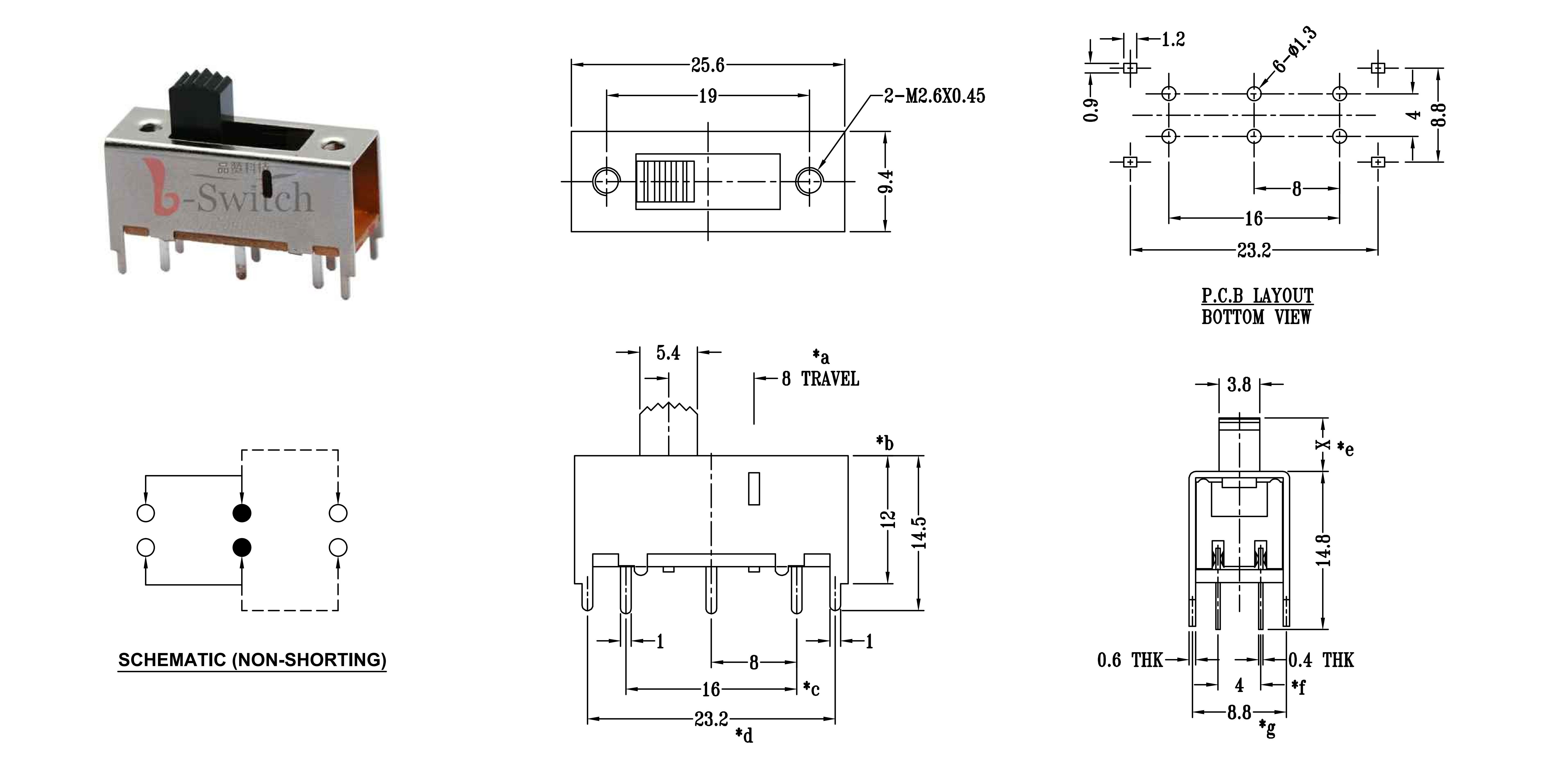 CONTACT ARRANGEMENT: 1P2T SLIDE SWITCH