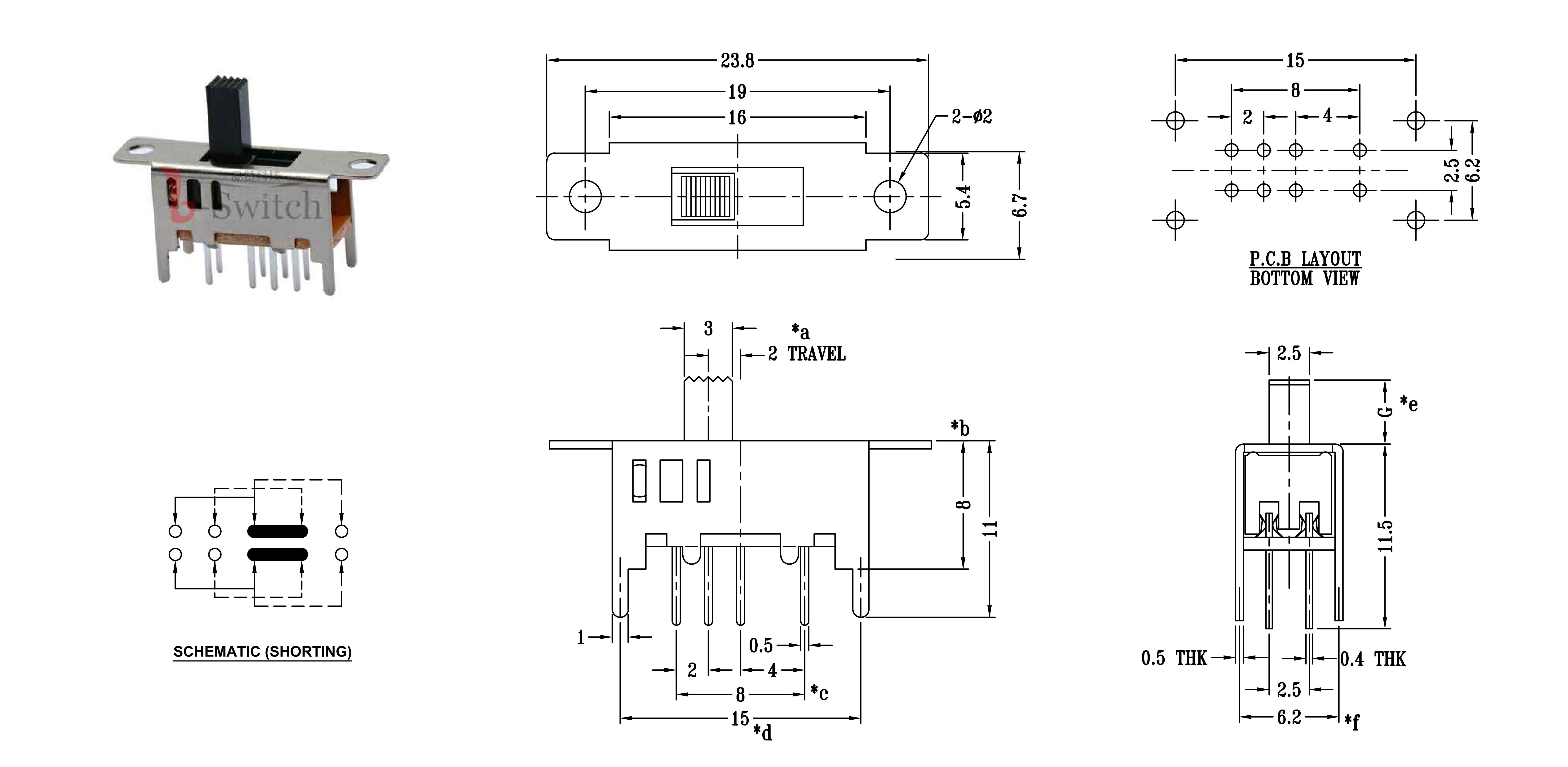 CONTACT ARRANGEMENT: 1P2T SLIDE SWITCH