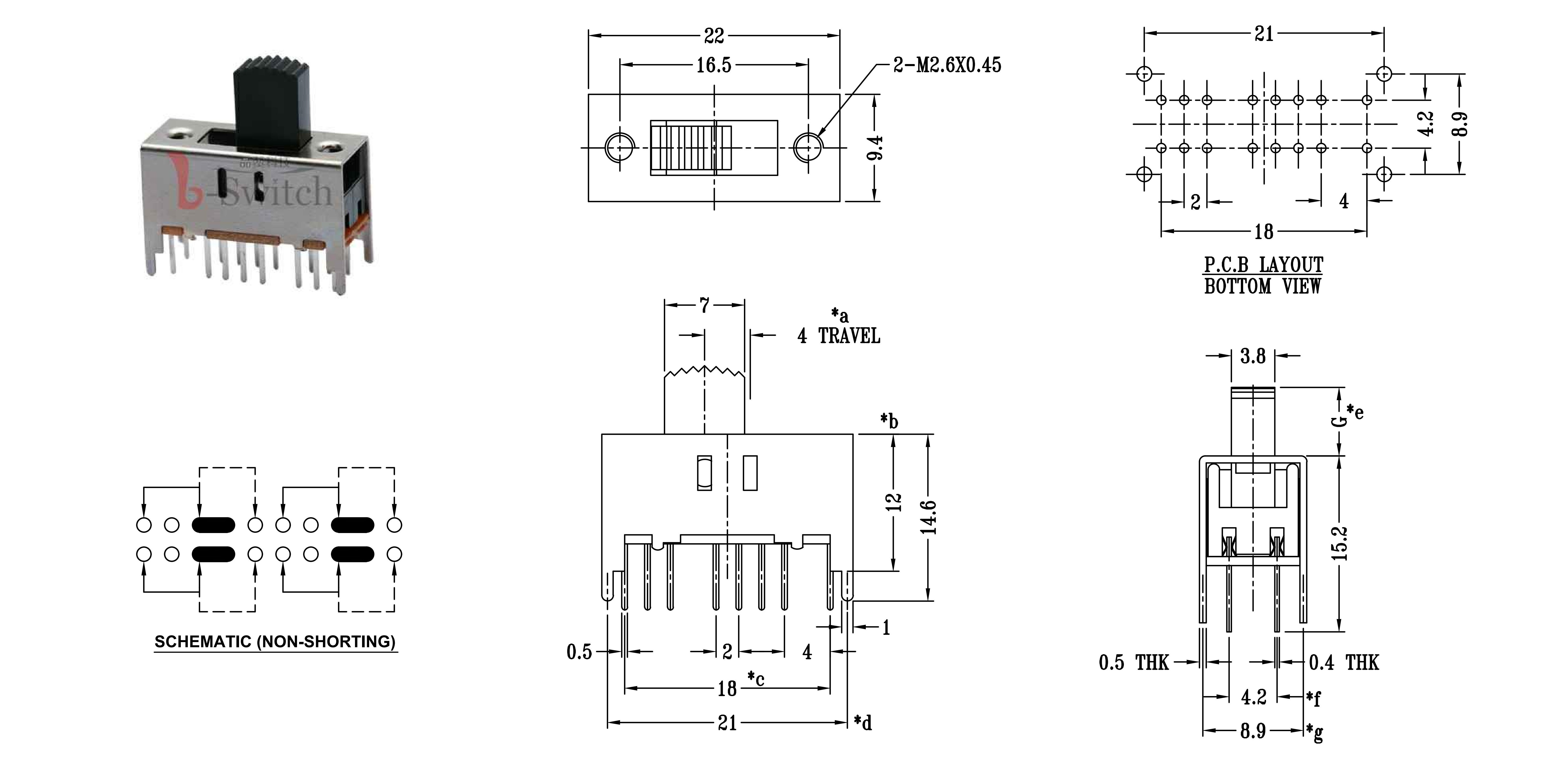 CONTACT ARRANGEMENT: 1P2T SLIDE SWITCH