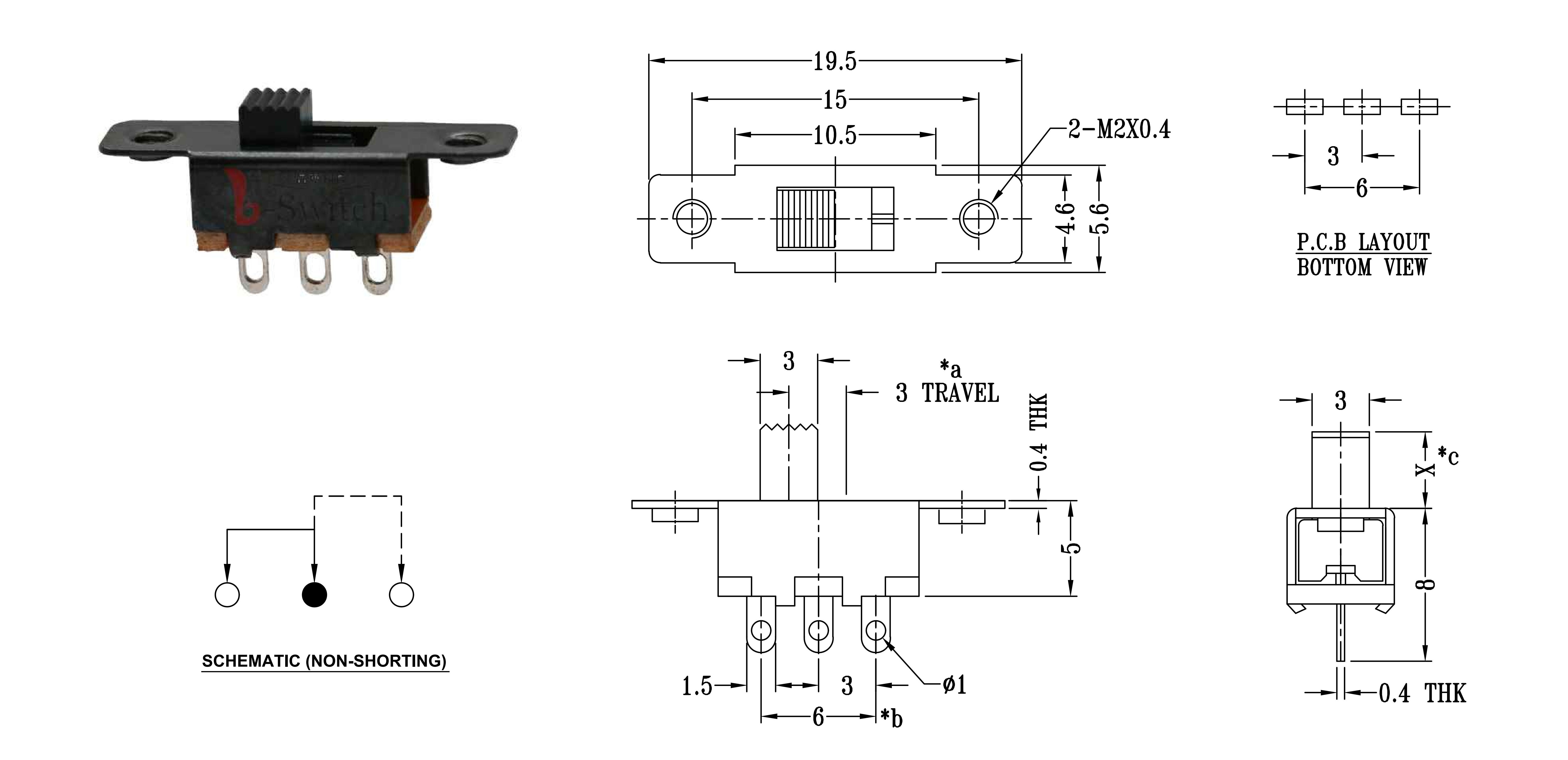 CONTACT ARRANGEMENT: 1P2T SLIDE SWITCH