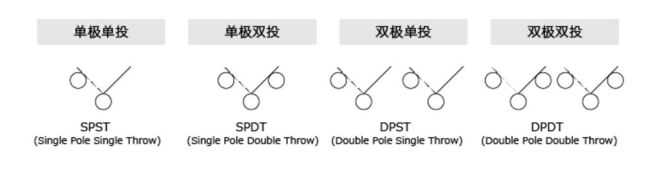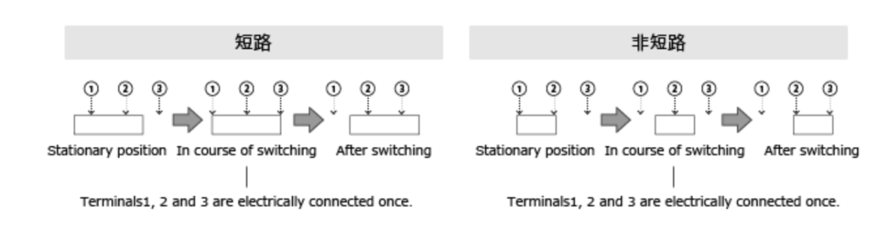 G-Switch的开关功能覆盖了所有的开关应有的短路和非短路的线路,回路切换时,端子间短时通电再切换,叫做“短路”,端子间短时0FF(断电)后再切换,叫做:非短路。常开