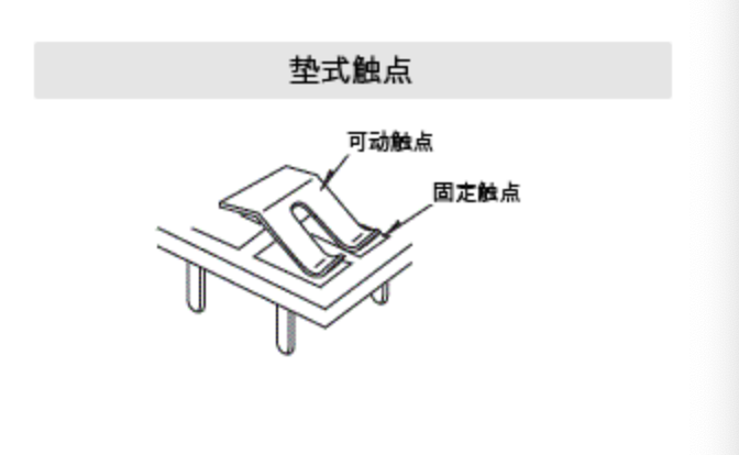 开关的回路构成用回路和触点数来表示,微小电流用开关的□回路□触点来表示。另外,开关可控制的回路数也叫□极,该开关可同时控制的触点数也叫□投。垫式触点可动触点碰到固定触点的触点结构,可能因绝缘物混入而导致接触不良。