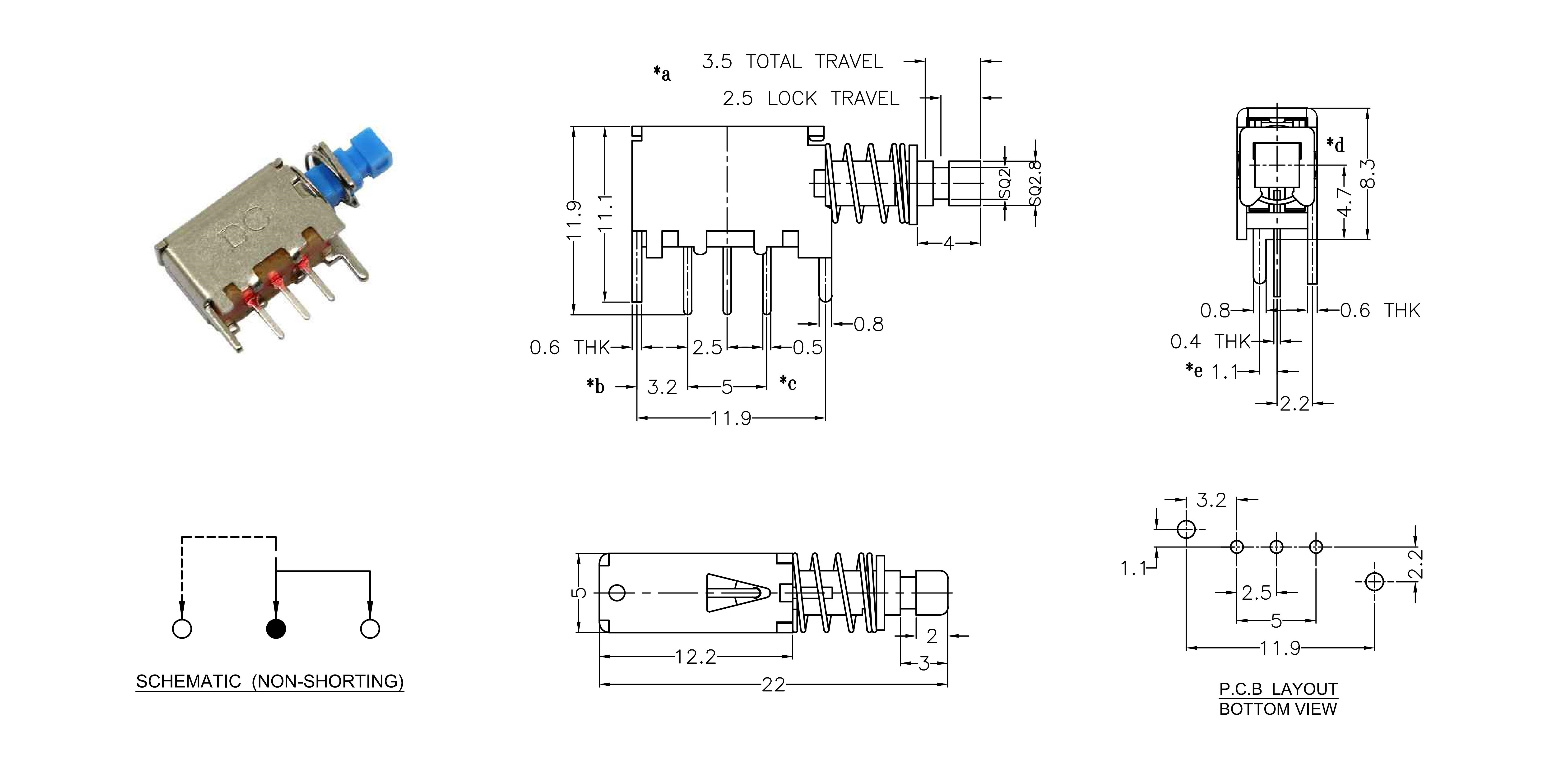 CONTACT ARRANGEMENT: 1P2T SLIDE SWITCH
